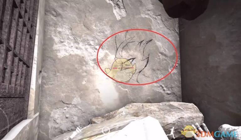 位置:进入在门外贴着“秦叔宝”“尉迟恭”的屋子中,查看屋子里面的墙壁,如图位置。