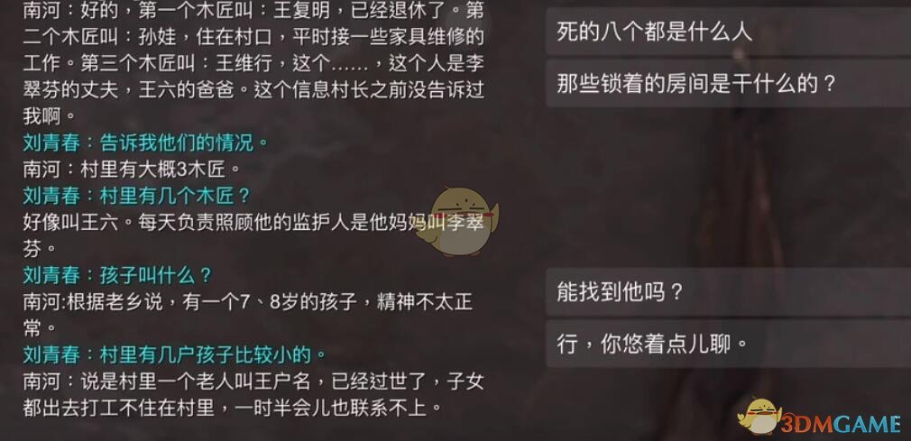 位置:在得到“木匠”这个线索之后,和南河进行联系。完成全部的对话之后,将会自动获得线索。
