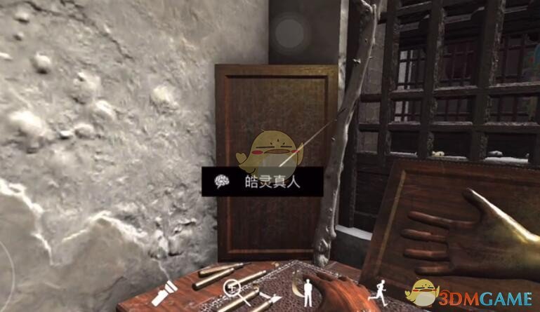 位置:进入虚掩着的门之后,查看如图所示的工作台这里。需要注意的是这个工作台上的木棍有字,必要时可以提高画质或者使用手电筒。搜集难度较大,不容易发现。