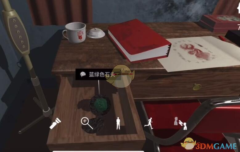 蓝绿色石头线索位置:左边如图所示位置抽屉打开,点击一下里边的石头,之后获取到该线索。线索详情:黑色的石头,和刘青春在木匠屋子里发现的石头一样,但是被剖开了,里面是一个蓝绿色的蜡一样的东西。