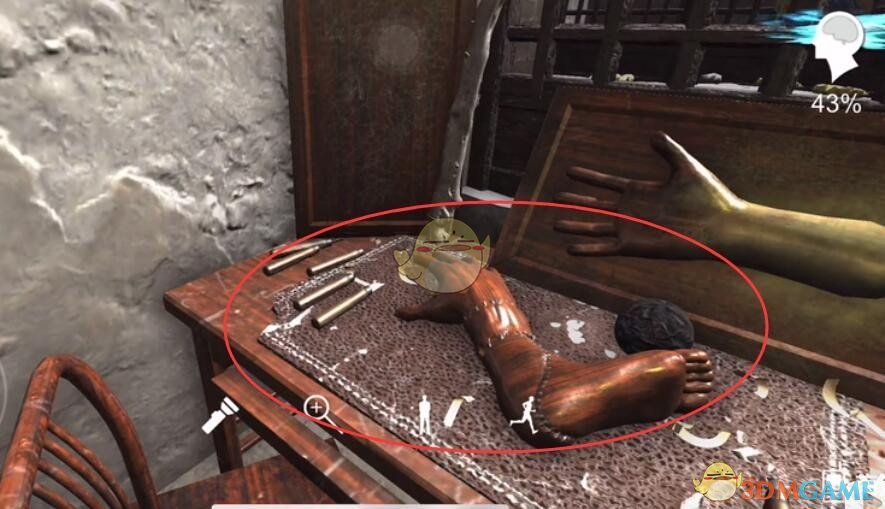 位置:进入没有上锁虚掩着的门,进入屋子之后点击图中桌子获取线索。