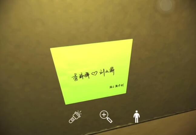 位置:来到“明天留言板”这个线索的前面如图所示位置,点击绿色的便利贴,之后收集到线索。