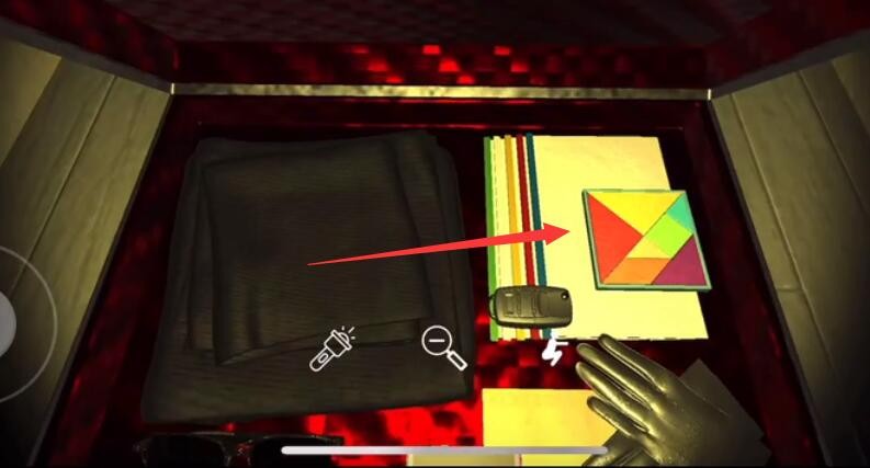 文件夹:进入密室,打开地上的密码箱,点击图中位置获取线索。(密码箱密码:485)