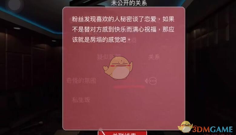 线索详情:粉丝发现喜欢的人秘密谈了恋爱,如果不是替对方感到快乐而满心祝福,那应该就是房塌的感觉吧。