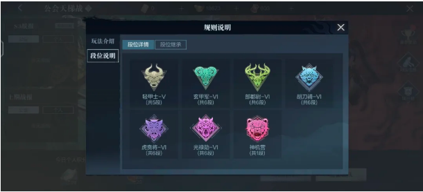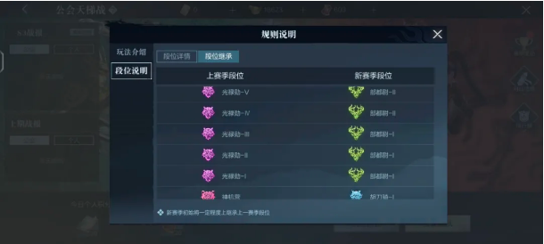 赛季段位由星级、小段位、大段位构成,它以公会为单位、以自然月作为赛季周期的活动表现总评价,每个月结算时公会中小霸王们都可以继承到一定程度的上赛季段位。