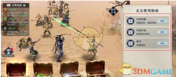 在每天的游戏中,小霸王们除了耐心等待武将为我们打理政务,获取资源以外,还可以通过快速挂机加速获取。