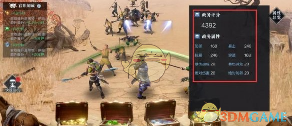 除了奖励之外,小霸王们等级提升后,还会获得一定的等级特权,所有武将都会增加一定的属性。大家在属性总览中,即可查看目前的政务评分,以及政务所加的所有属性。从暴击到防御,各种属性应有尽有~