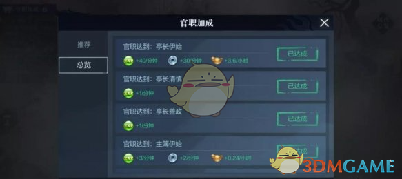 这里给大家分享一个技巧,如果小霸王们在晋升官职时,某一任务过于困难无法完成的话,可以在攻克该任务的同时,提前了解下一官职的任务内容,如果有能够完成的任务时,可以提前完成,这样就能够节省后续做任务的时间。