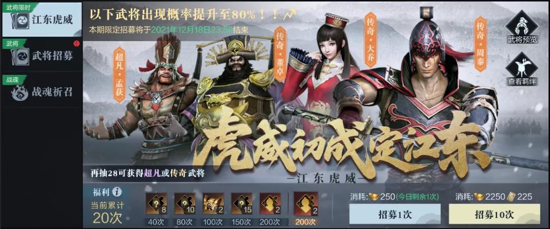 活动时间:12月9日-12月18日限时10天开放江东虎威限定招募活动