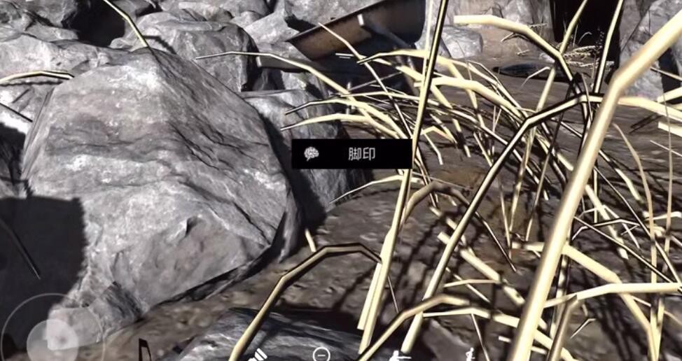 位置:如图,来到此位置(两边石头的中间处刚好形成一条路),查看上面的痕迹后可以得到线索。