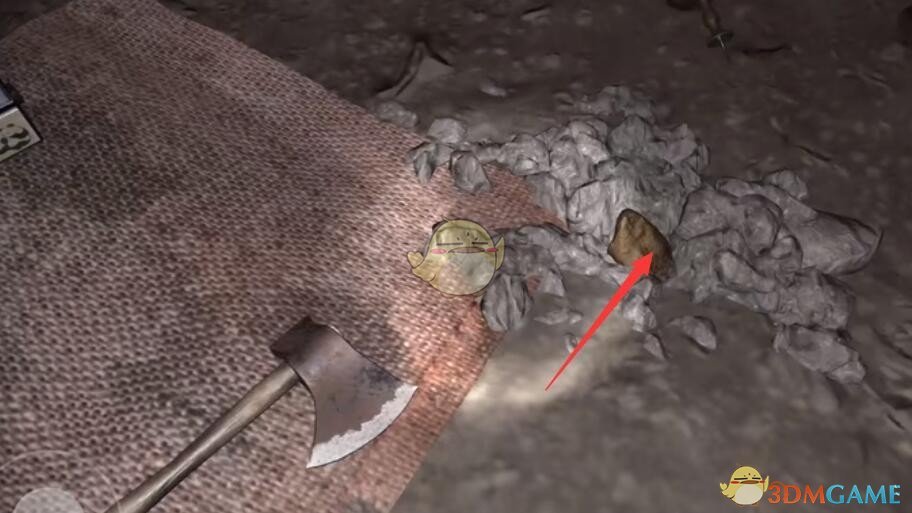 位置:进入山洞最里面,查看如图所示位置的石块,进入特写镜头后自动获取线索。