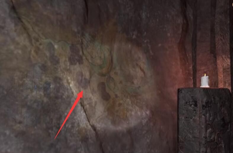 位置:一路往前走到山洞最里面,查看此位置的墙壁可以得到新线索。