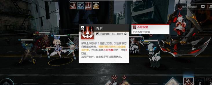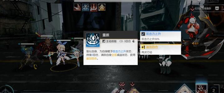 3.同时注意BOSS的蓝色技能重振,这技能会让她获得追加回合,也就是当她AOE还有2回合CD时,这重振技能CD好了立马开盾,不然还是要吃她的暴力AOE。