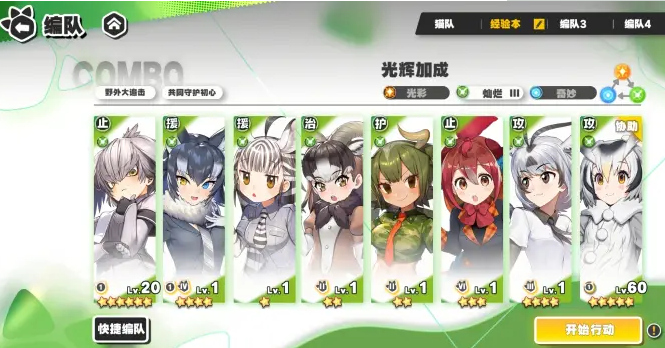 4、当然过关方法很多,因为我练的灿烂队所以用的灿烂打法。练的其他队伍打法也基本相似,比如奇妙队的豹子减攻后企鹅加伤然后朱鹮秒杀。