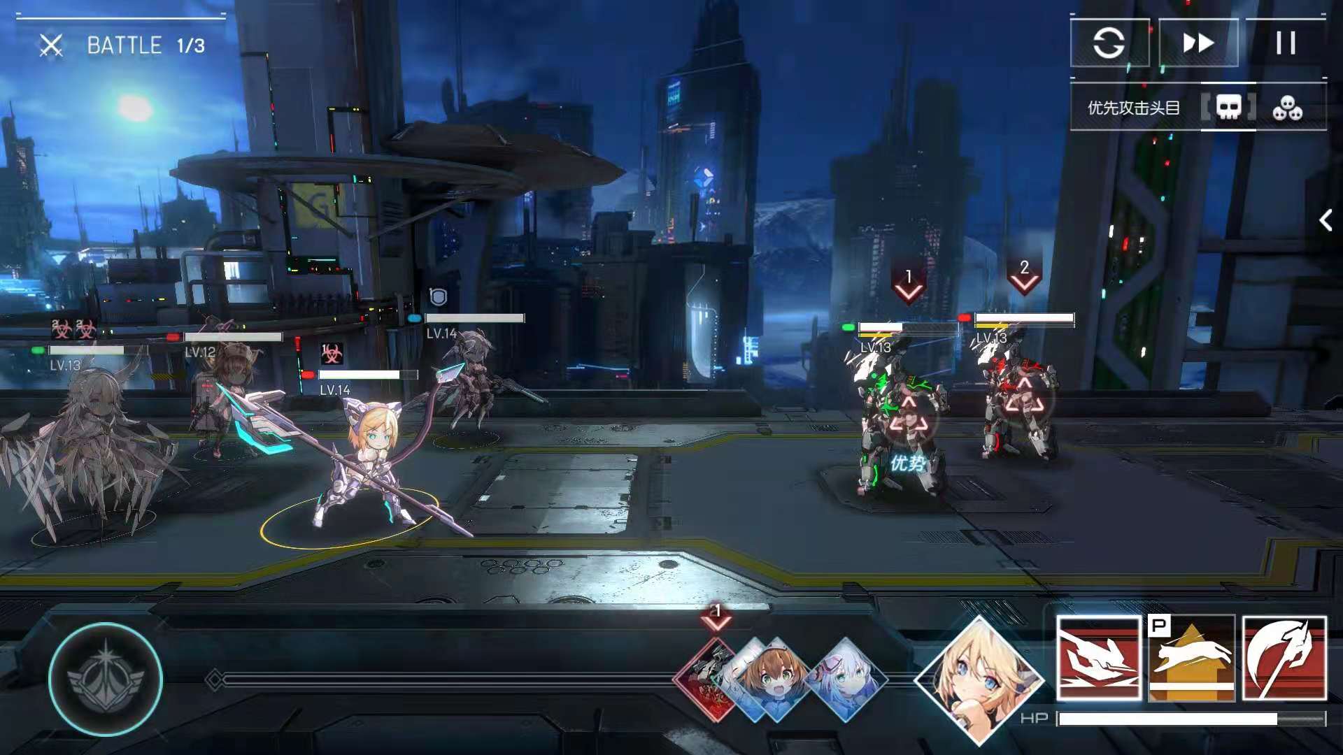 2技能:单体攻击,对单体目标进行2-3次电击,其中一次电击免疫对方的属性抵抗,如果技能命中的话追加一回合免疫效果,冷却时间4秒。