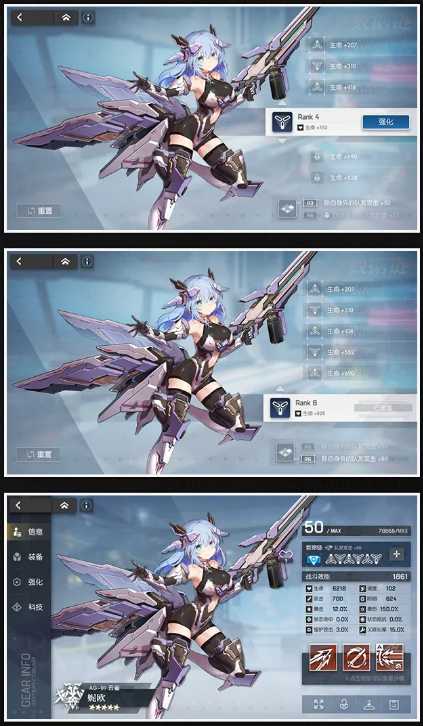 优化战姬RANK效果,所有战姬增加仅对队伍中的队友生效的属性加成。该加成会根据RANK等级进行解锁。
