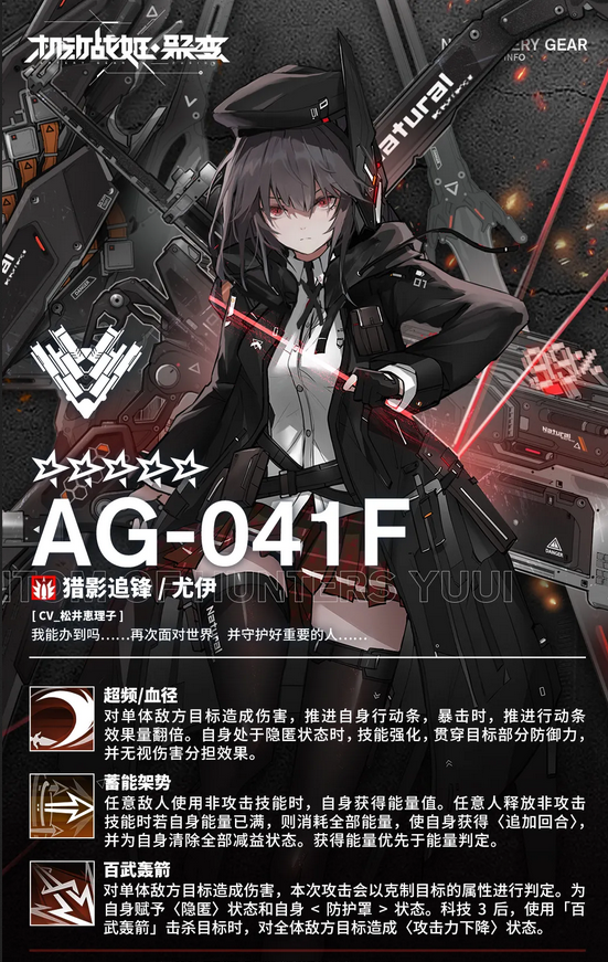 除了AG-041F这一基础称号外,尤伊身上还有许多头衔,其中最为人熟知,也是尤伊本人最常提起的,便是“阵线第48军的一员”。