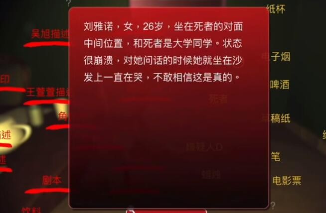 位置:死者对面中间位置,点击死者对面中间的椅子可以获得线索。