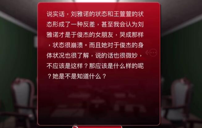 本次易采游戏网小编给大家带来了《孙美琪疑案:白马桌游》状态反差线索获取位置介绍,状态反差是一个三级线索,需要关联获得,关联公式是:刘雅诺描述+嫌疑人B+莫名的淡定=状态反差。