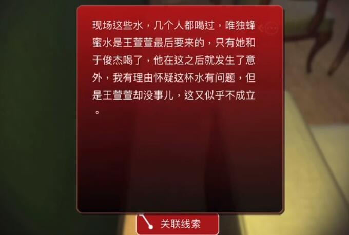 关联五级线索吴旭描述和蜂蜜可以获取三级线索水有问题
