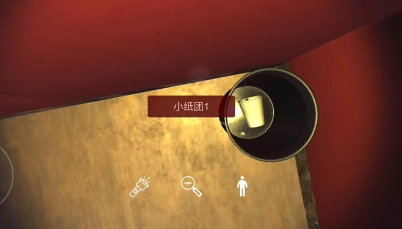 位置:如图,在垃圾桶可以找到,很小的一个纸团,需要仔细查看,很容易遗漏!点击获取线索。