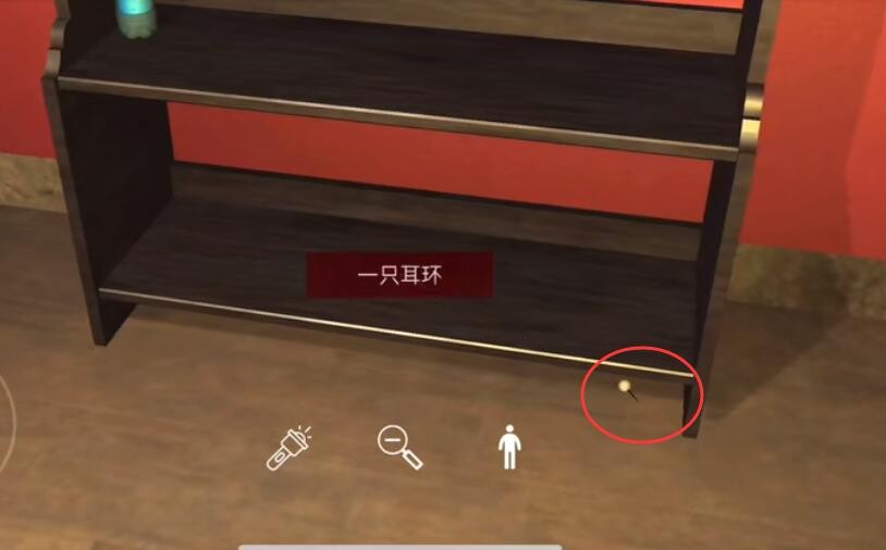 位置:如图,在这个架子下面,金色的耳环,点击获取线索。