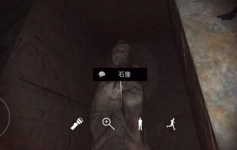 位置:上台阶后,在图中这里可以看到一尊石像,点击获取线索。