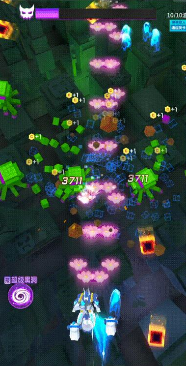 4、蜘蛛的大小会影响每次发射的子弹数量,最多4 个,最少2个。建议将战机置于离蜘蛛分身较远处有更大的操作空间。