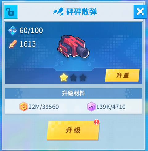 在比特大爆炸中,其实决定弹幕效果及形态的是我们的主武器。虽说主武器和战机可以自由搭配,但介绍了月长石就不得不提与其同品质的砰砰散弹。砰砰散弹是中期我们会使用到的常规主武器,由于它的弹道比较分散且攻击频率较低,所以推荐大家优先升级弹道,这样可以大大提升砰砰散弹的释放频率。