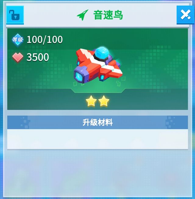不同的战机除了拥有特色的外观,越高的品质带来的装备技能也越好。今天的主角——音速鸟,也就是我们的新手战机。虽然音速鸟仅仅是绿色品质,也没有月长石与竹骑士的重生技能。但等级升高、星星升满后,后期同样有一战之力。