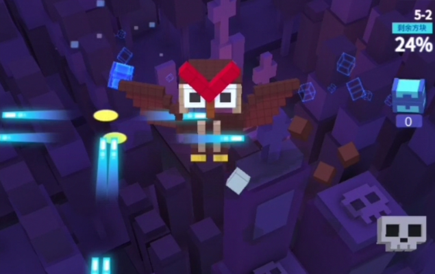 猫头鹰拥有多种行动方式,刚出现时为垂直移动,移动速度较慢。在到达屏幕底部、再次由屏幕上方刷出时,将会变更为Z字形移动轨迹。猫头鹰的血量很多,撞击我们可造成伤害,在没有强力武器BUFF前很难将其快速击杀。猫头鹰拥有一个特殊技能:头部转动360°后会发射一个骷髅头怪物。这个怪物与普通骷髅头拥有相同的行动方式,骷髅头撞击我们会造成伤害。猫头鹰集多血量、多种行动方式和特殊技能于一身,是一个较难对付的怪物,威胁程度高。