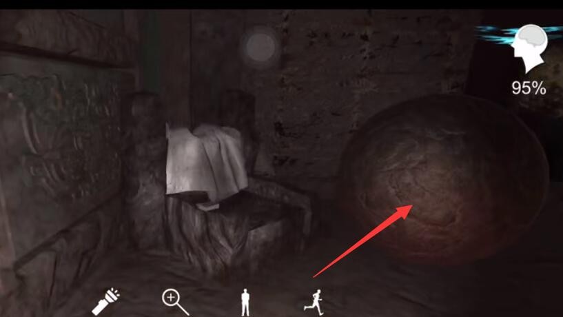 获取【金属网用途】线索后,点击一下【金属网】,在如图位置可以看到一个巨大的石球