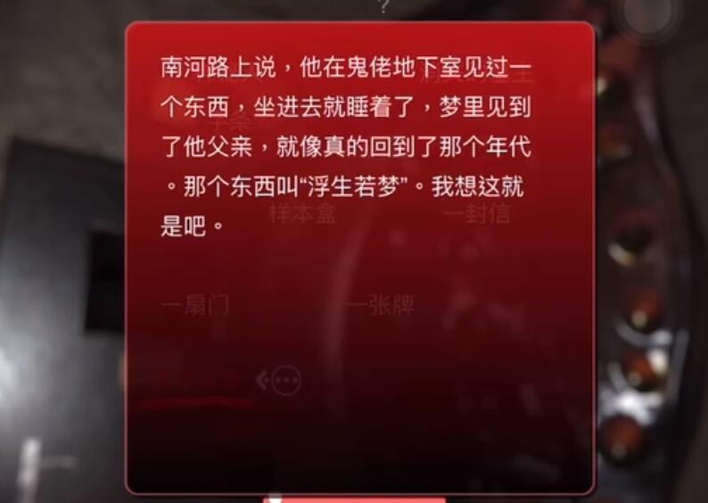 获取【金属网用途】线索后,点击一下【金属网】,在金色棺材这里有一个密室,钥匙打开后可以发现一个很大的浮生若梦。