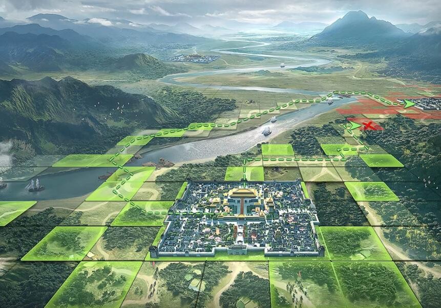 游戏还原了冷兵器时代的真实地形和行军方式,在探索道路、构建攻势的同时,也要提防敌方的侧翼围堵、道路封锁等战术行为;