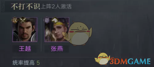 不打不识指的是王越和张燕,这个将缘的由来是在新手剧情的时候,张燕赖进犯主公的时候,王越和其打了一场,后来张燕投诚主公,所以就有了不打不识。