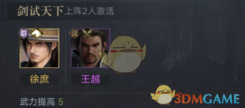 王越的将缘有三个,分别是“剑胆琴心”、“剑试天下”、“不打不识”。