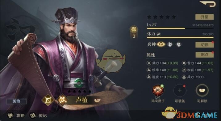卢植在汉阵营当中应该算是最高配的医治型武将之一,所以在一开始搭配皇甫嵩,可以在前期放心培养,后续转换高阶阵容时可以省下很多的养成费用。