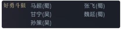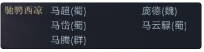 在我们的游戏中,马超的将缘有三个,分别为:五虎上将、驰骋西凉、好勇斗狠。
