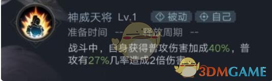 马超的技能被命名为:神威天将,这个也我们对神威天将军的一种致敬了,也正如大家对他的评价:勇猛、虎将、神威天将军。他是将门之后,他是西凉铁骑。所以,我们在技能的设计上也是突出了他的勇猛:战斗中自身获得普攻伤害加成,普攻有几率造成2倍伤害。