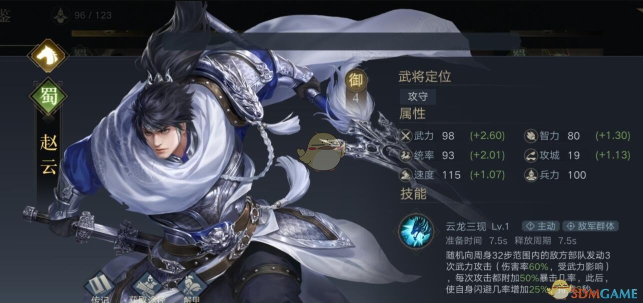 赵云:技能属性图鉴| 宝物推荐| 阵容推荐 | 加点培养攻略