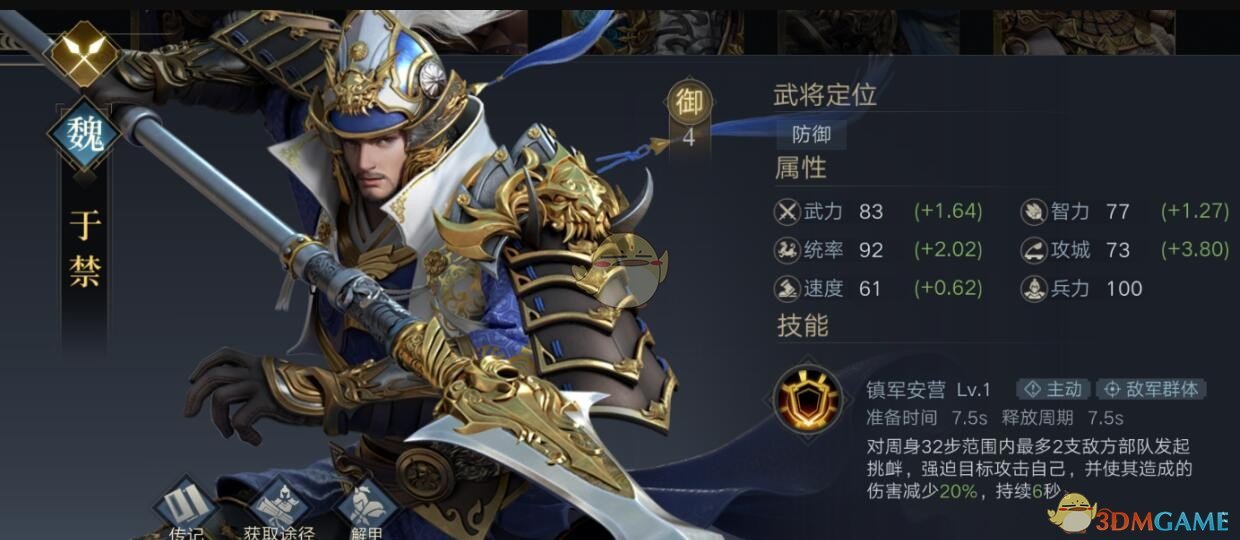 荣耀新三国手游于禁怎么样?这是一个很受欢迎的英雄,很多小伙伴想要知道他厉不厉害,值得培养吗?下面是小编给大家带来的《荣耀新三国》手游于禁技能属性立绘图鉴分享,一起看看吧!