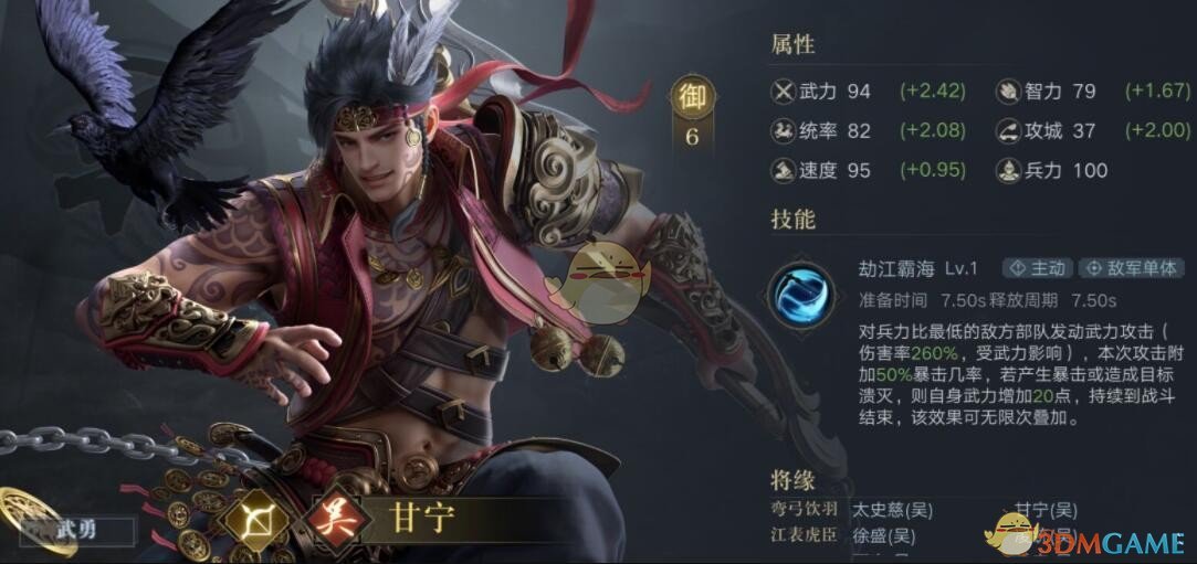 甘宁是吴国的武力输出代表,同时也是暴击流武将的代表。