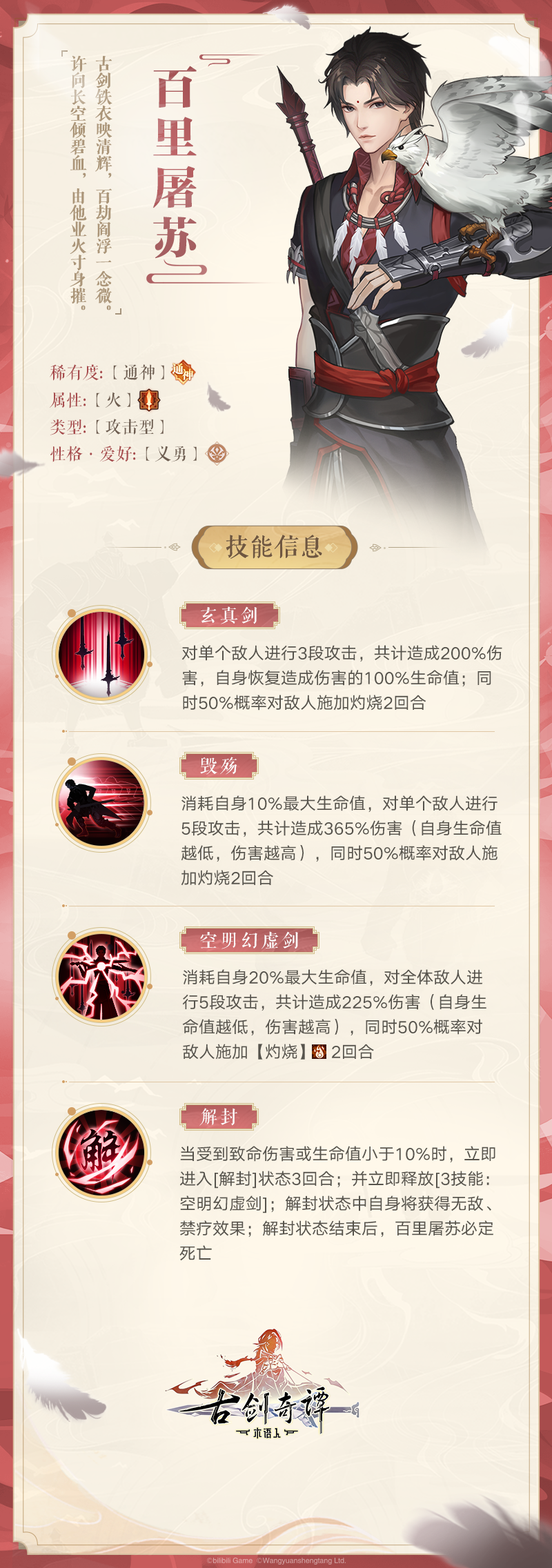 古剑奇谭木语人游戏中的百里屠苏是新上线的角色,相信有很多小伙伴不是很清楚百里屠苏怎么样,接下来就让小编给大家带来《古剑奇谭木语人》百里屠苏技能介绍,感兴趣的小伙伴一起来看看吧。