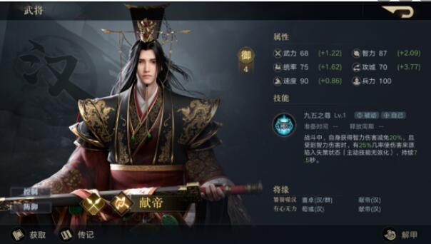 汉献帝-刘协:技能属性图鉴| 宝物推荐| 阵容推荐 | 加点培养攻略