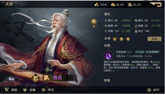以上就是小编整理带来的《荣耀新三国》蔡邕技能属性图鉴,大家还喜欢吗?更多精彩内容,请点击关注手游网,小编将持续为您更新!