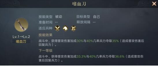 除了嗜血刀外,骑兵泛用性比较强的“神器”铁骑镫或是免疫负面状态,并有一次兵力回复效果的陷阵兵符同样是比较适合皇甫嵩的。
