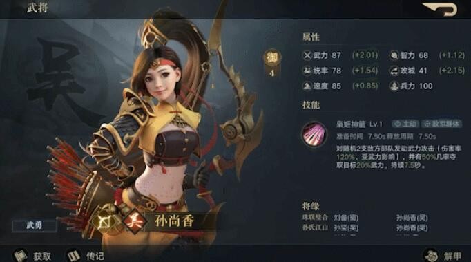 孙尚香:技能属性图鉴 | 宝物推荐 | 阵容推荐 | 加点培养攻略
