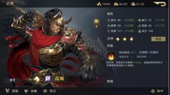 然后还有高顺也是强大的输出型武将,他的技能可以给到超高的输出加成以及“穿透”伤害。