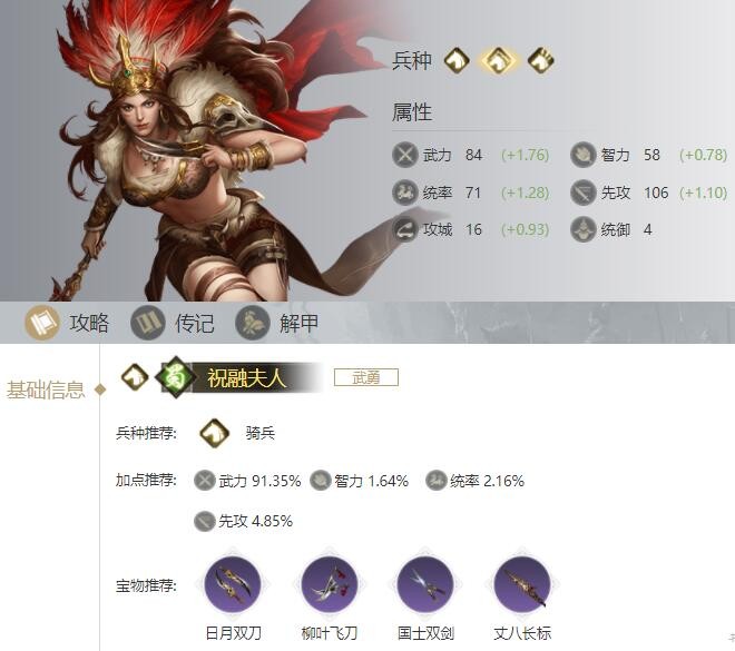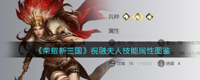 以上就是小编整理带来的《荣耀新三国》祝融夫人技能属性图鉴,大家还喜欢吗?更多精彩内容,请点击关注手游网,小编将持续为您更新!
