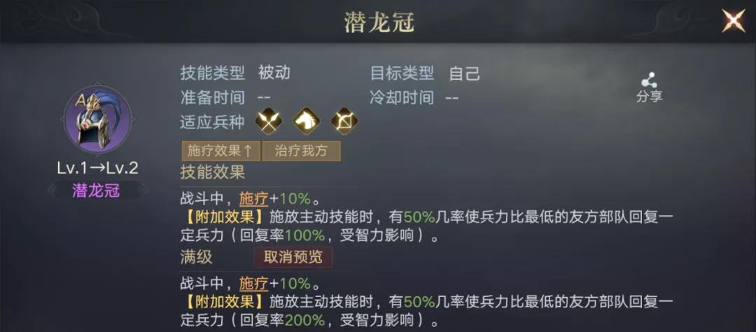 千万不要把潜龙冠装备给了无法施放主动技能的武将身上,不然就白瞎这个附加效果啦!